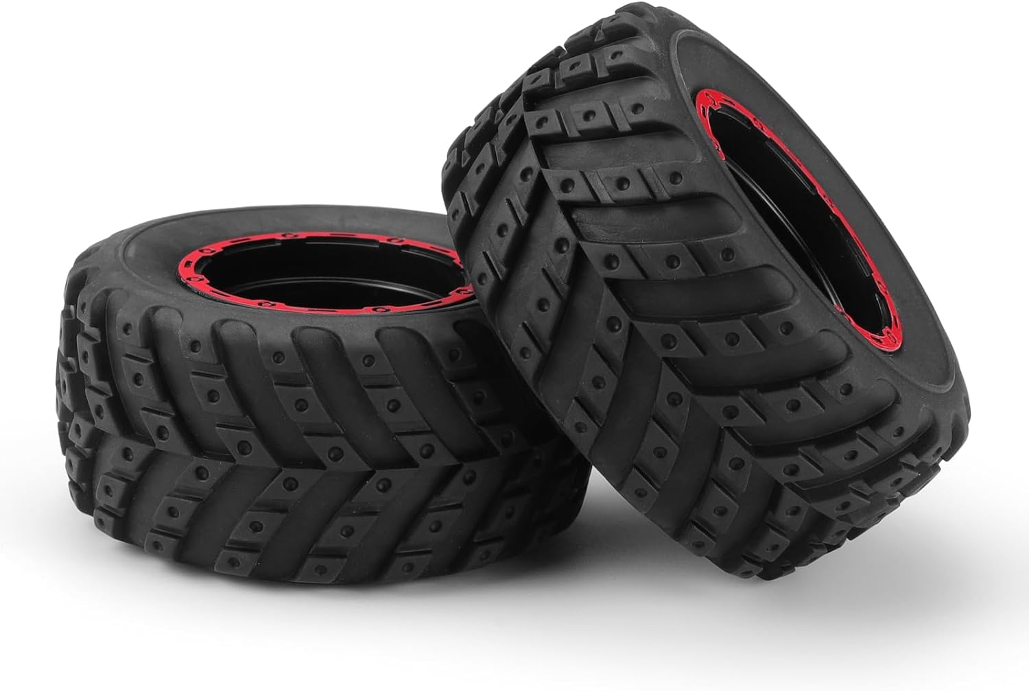 HAIBOXING RC Cars Accessories Tires, 1/12th Scale Brushless RC Truck Spare Parts Wheel Complete Red 2pcs Apply to HBX 903 & 903A (90115B)