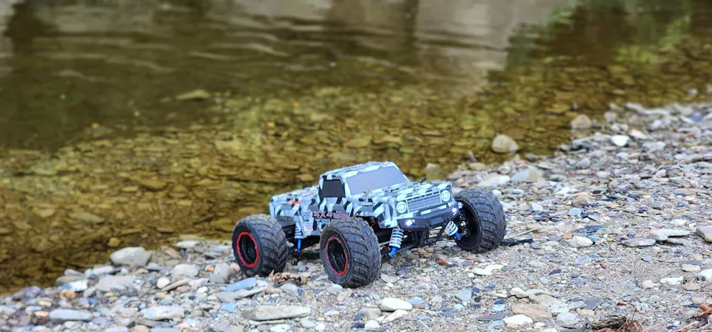 Yes! It features a splash-proof design with an upgraded cooling ESC for high-intensity operation, rustproof double-sealed ball bearings to reduce wear, and a robust chassis with side mudguards to keep internal components clean and protected.