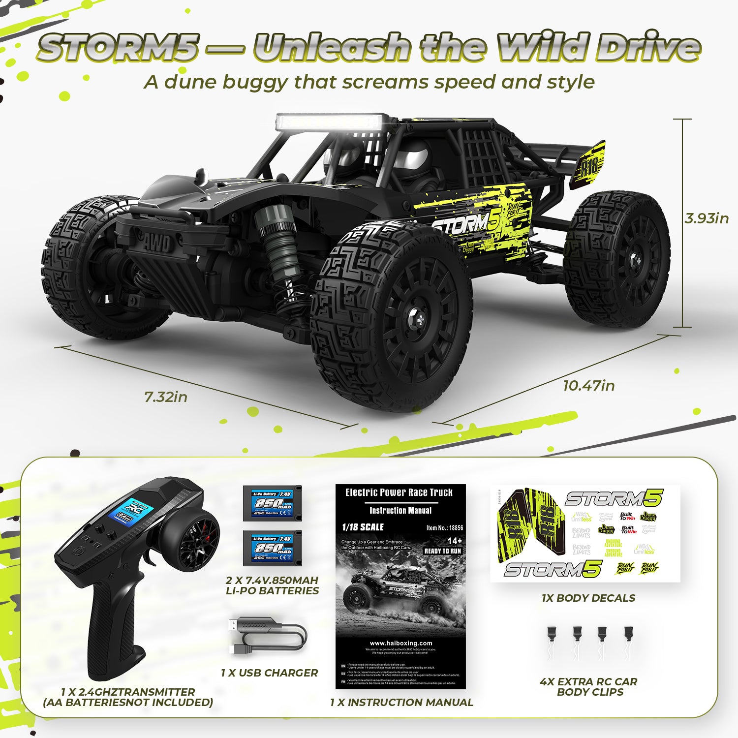 HAIBOXING 18868 1/18 Brushed RC Buggy Car with 2 Batteries