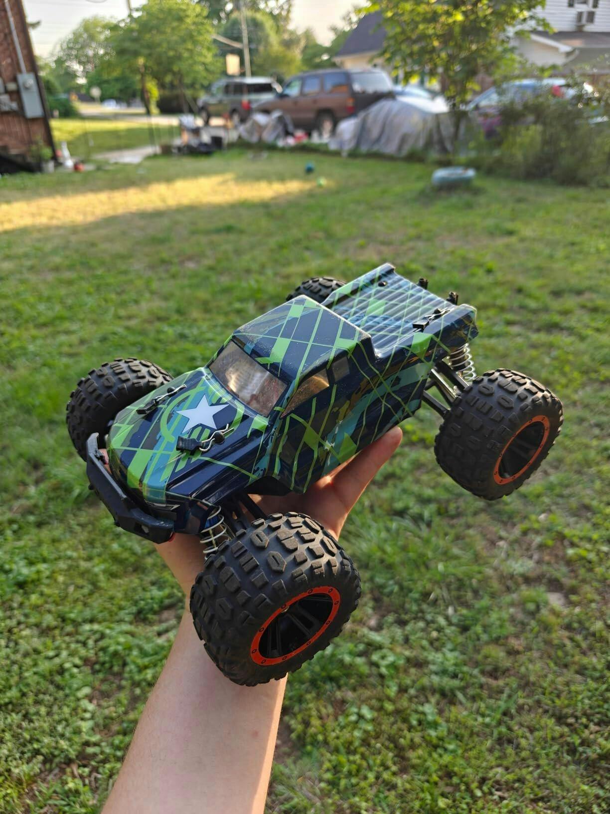 - 【Versatile and Unmatched Performance】: With the flexible 1mm thick PVC body and animated DIY decals, this brushless rc truck boasts cool looks and incredible durability. It comes with sponge-inserted off-road tires and optional paddle tires perfect for snowy and sandy surfaces. The wheelie that enhances stability during quick vehicle start is provided for endless excitement.