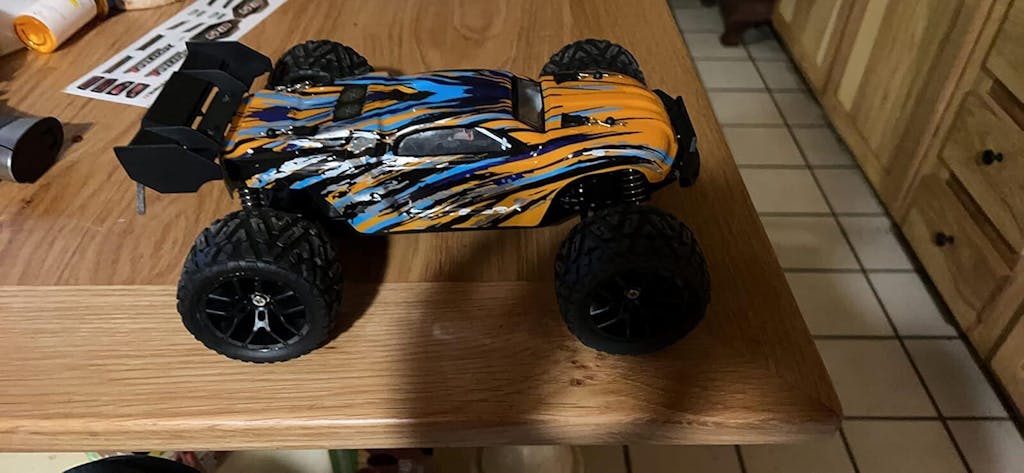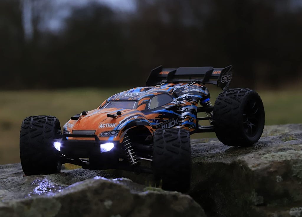- Hobby-grade fast remote control car--Equipped with a high-performance 380 brushed motor, delivers powerful propulsion, resulting in exceptional speed and acceleration for this car to burst out at 36+km/h. With its 2 7.4V Li-po battery, users can enjoy extended playtime of up to 40 minutes.