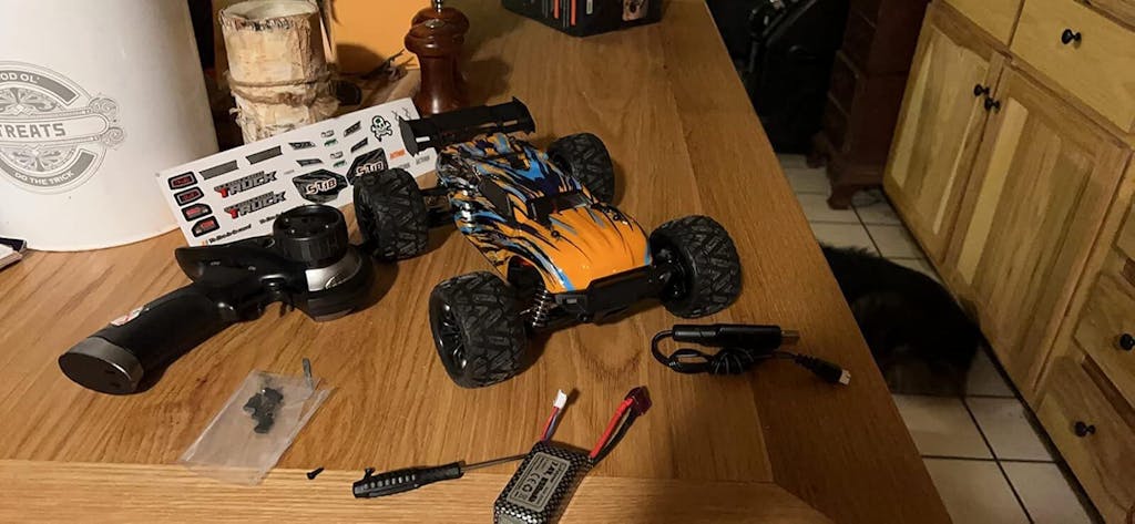 - Equipped with a high-performance 380 brushed motor, delivers powerful propulsion, resulting in exceptional speed and acceleration for this car to burst out at 36+km/h. With its 2 7.4V Li-po battery, users can enjoy extended playtime of up to 40 minutes.