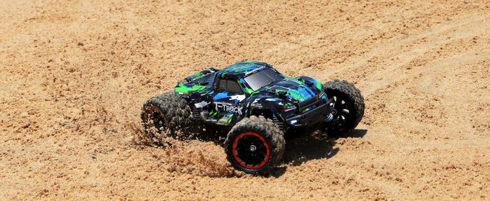 • 2.4Ghz Transmitter with speed tuning selection rises above all the other cars. Definitely, T-truck is one suitable for R/C car beginners who want more speed and long to handle brushless powered cars.