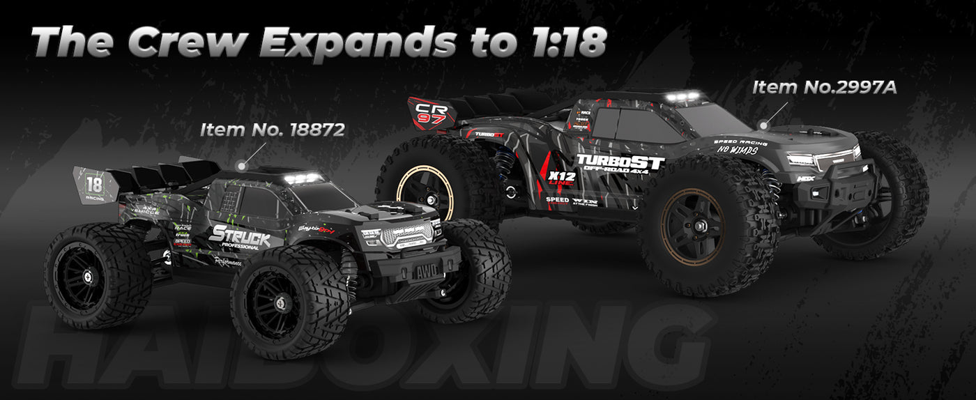 HAIBOXING 18872. 1/18 scale brushed RTR buggy. Tough construction for aggressive jumps and off-road runs.