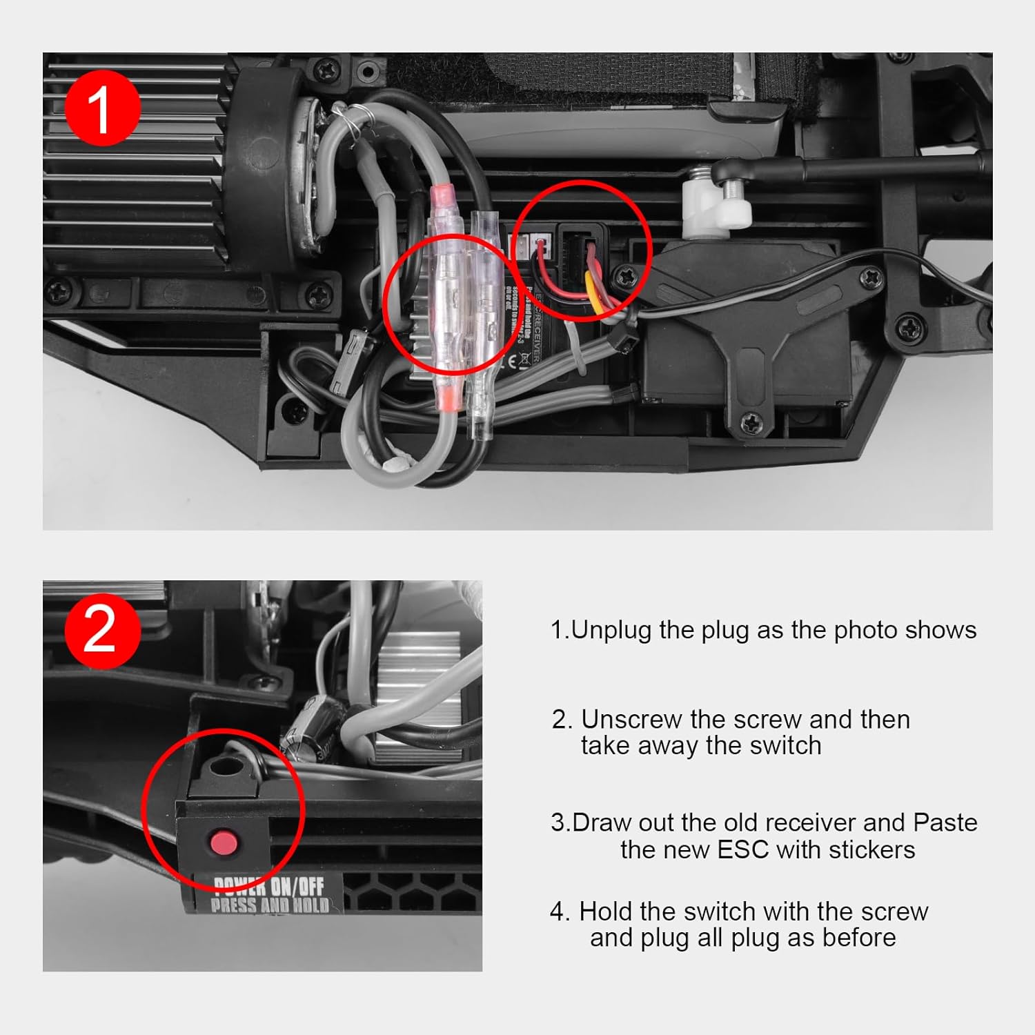 HAIBOXING 1/12TH Scale RC Cars Spare Parts Waterproof Brushed ESC/Receiver Apply to 905&903 (90127)